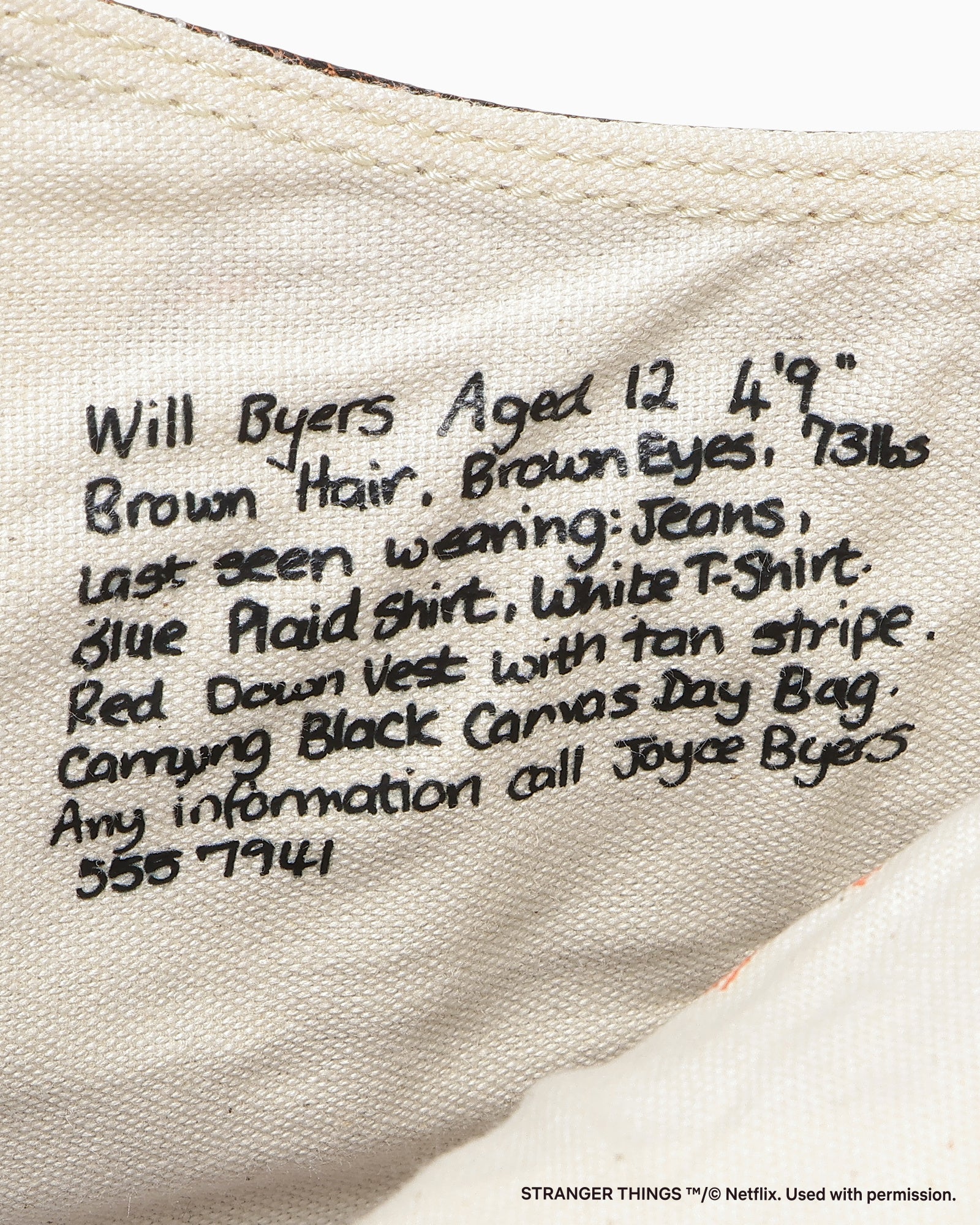 ・劇中で登場人物のウィルが行方不明になった際に貼り出されたポスターの実際のフレーズを左足トウキャップとライニングにプリント。