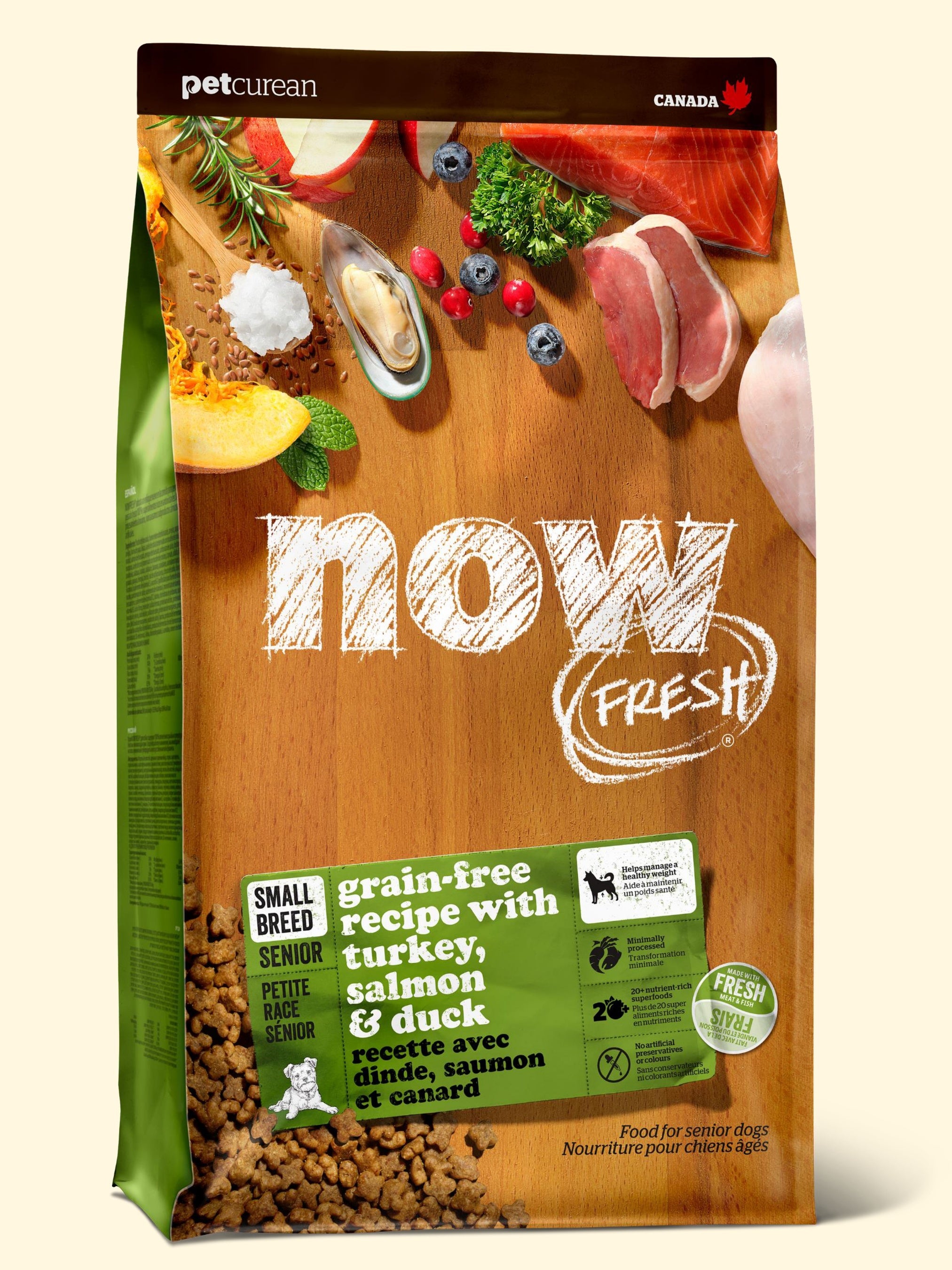 トコトン新鮮にこだわったミールフリーのドッグフード『ナウフレッシュ』。乾燥肉やミートミールを使わない「100%」新鮮な生肉・鮮魚を使っています。CFIA(カナダ食品検査庁)基準で人間用として合格した食材を厳選し、さらに一歩進んで、その食材の鮮度まで追求したこだわりこそが、NOW FRESH™(ナウフレッシュ)最大の特徴であり美味しさの秘密です。あなたの家族に「新鮮という品質」をお届けします。