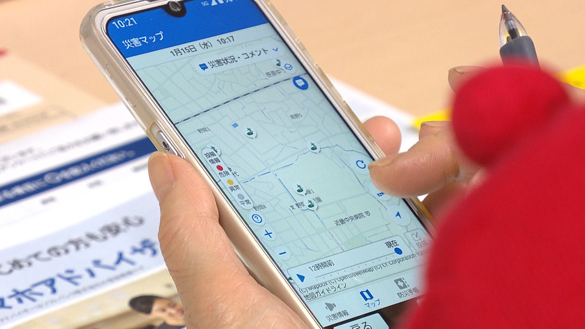 北本さんは、避難経路の設定方法などを実践し、地震や水害などといった災害の種類に応じて、どの避難場所が使えるかを事前準備で確認できることを説明しました。