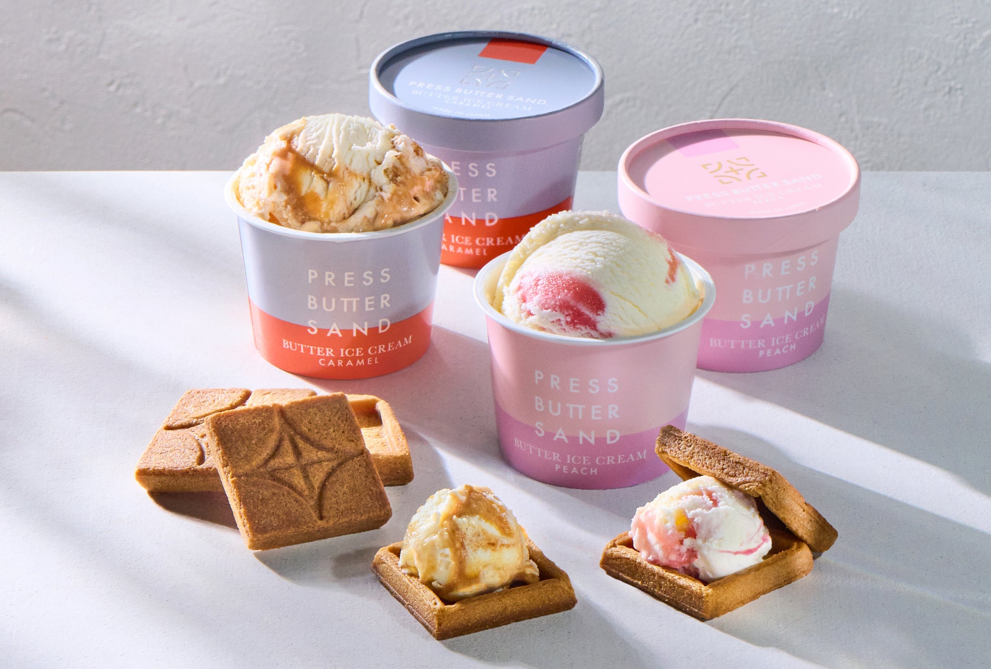 お中元にもお勧めの夏限定「PRESS BUTTER SAND」新商品が登場!甘酸っぱい桃の「バターサンド〈桃〉」「バターアイスクリーム〈桃〉」ブランド初展開の「3層のフルーツジュレセット〈桃・檸檬〉」