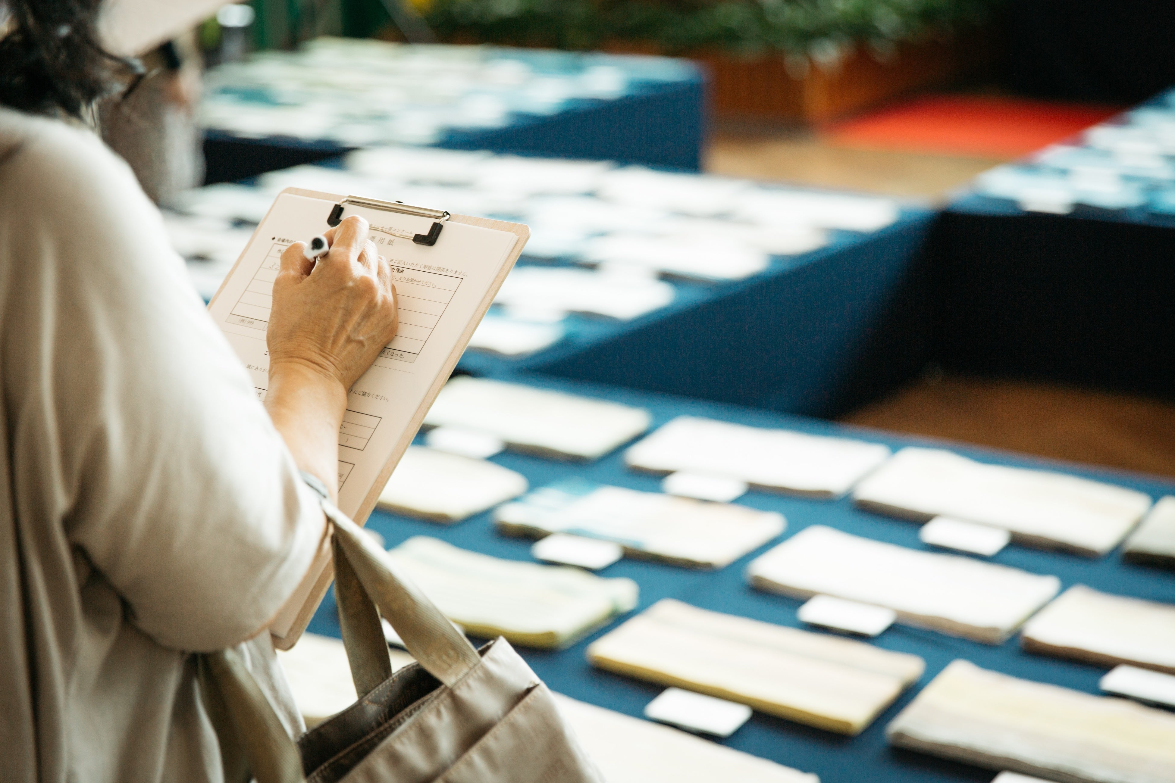 投票方法は、全作品の中から気に入ったミンサー帯を数本選んでいただき、用紙に番号を記入。1得票あたり1点の積み上げ式により、順位を決定いたします。結果は、6月下旬に株式会社やまと・きものの森財団のホームページにてお知らせし、さんちにて表彰式を実施予定しております。