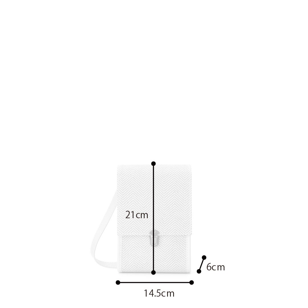 財布やスマートフォン、キーケース、文庫本などの持ち物をすっきりコンパクトに収納できるサイズです。