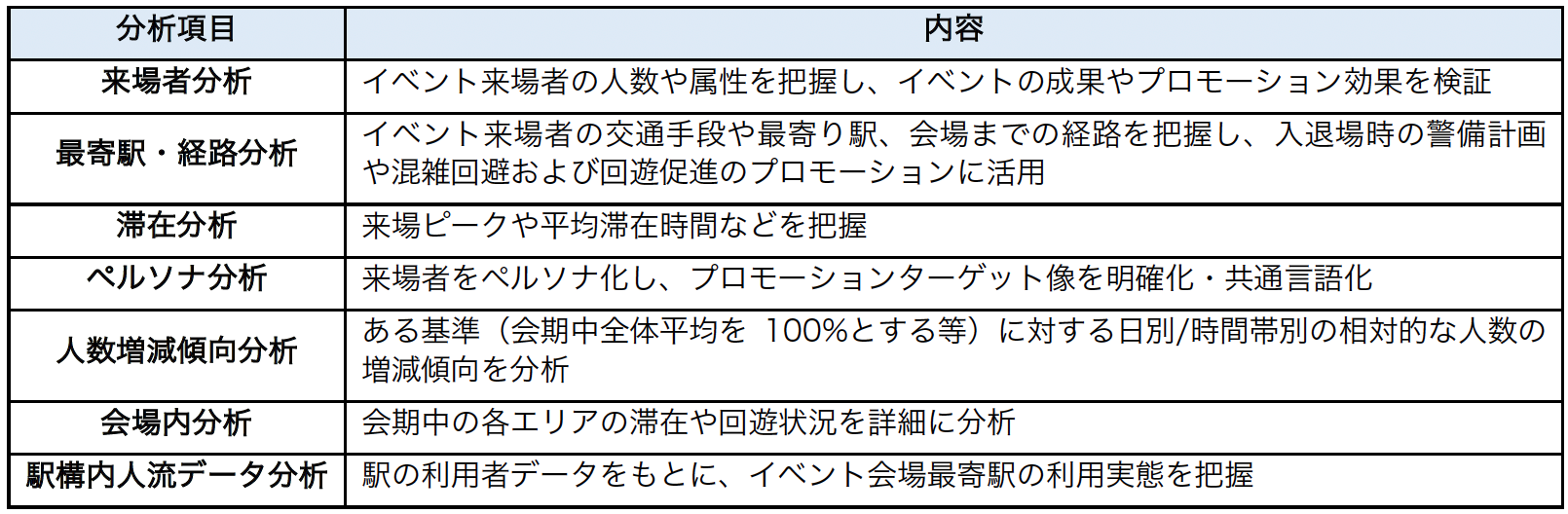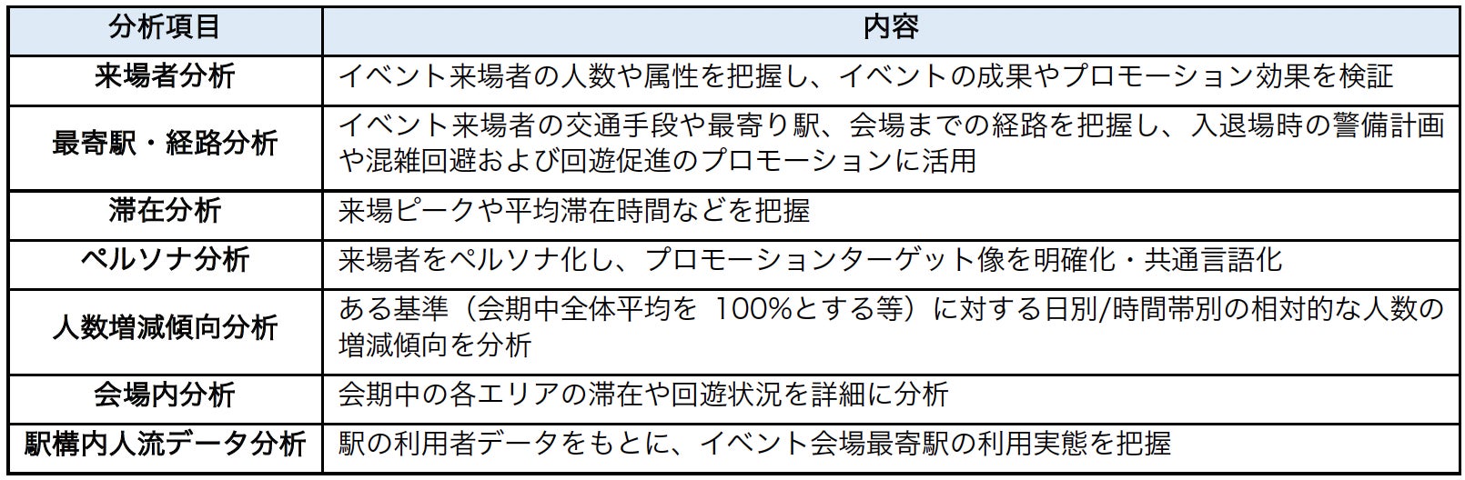 ・分析結果(特性や行動傾向)に基づく最適なイベント会場の選定。