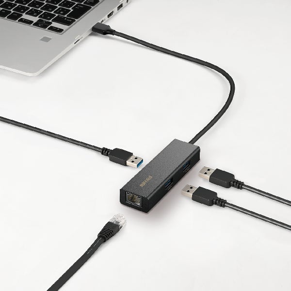 ケーブル1本でUSB機器をまとめて接続。USB 3.2(Gen1)対応Type-A端子を3ポート搭載した、USBハブ付きGiga対応LANアダプターを6月中旬に発売