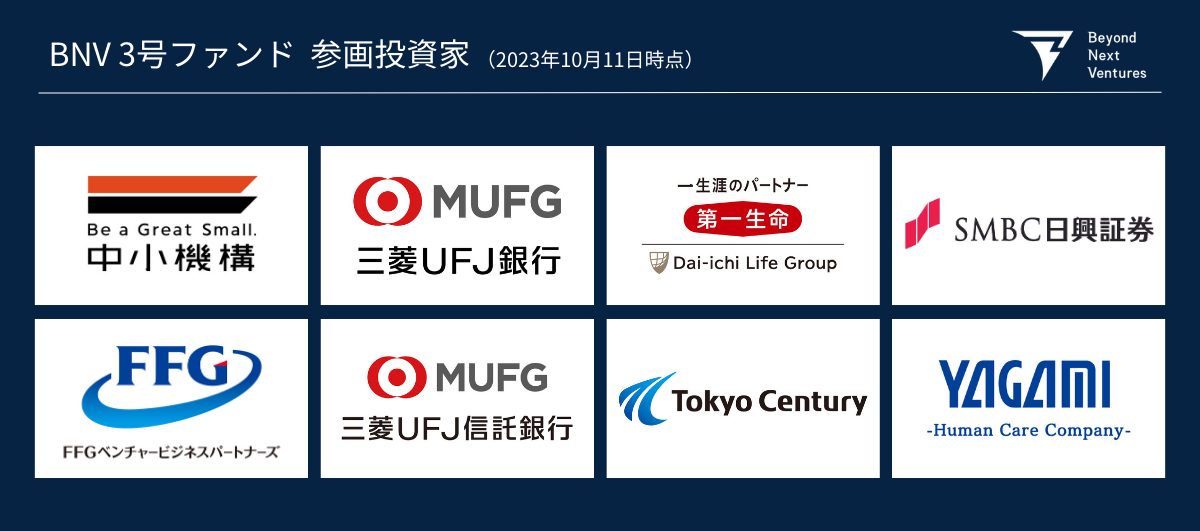 BNV3号ファンドの有限責任組合員(以下、LP)※2023年10月11日時点