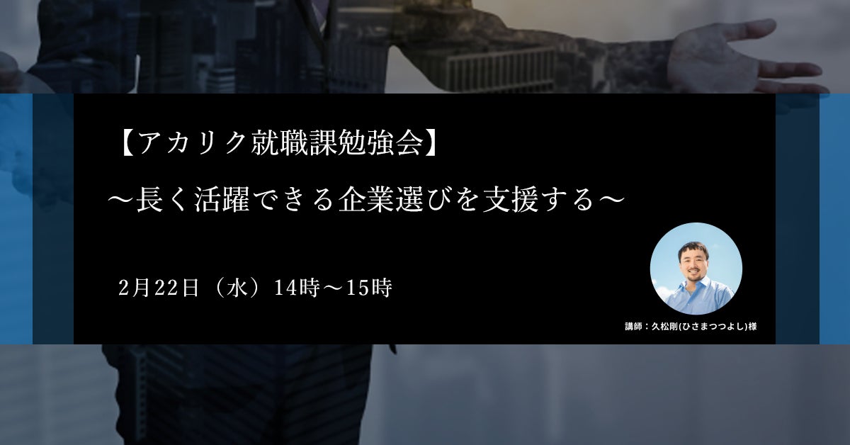 【アカリク就職課勉強会】~長く活躍できる企業選びを支援する~|2月22日(水)開催