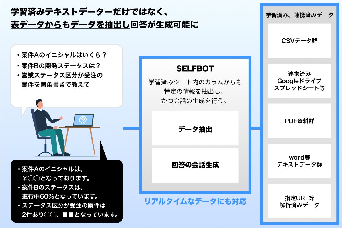 SELFBOTは、学習用のファイルを用意するなどの手間は不要。すでにあるドキュメントやサイトURLから即座に学習するため、短期間での導入が可能で、導入企業側の手間も大幅に削減。