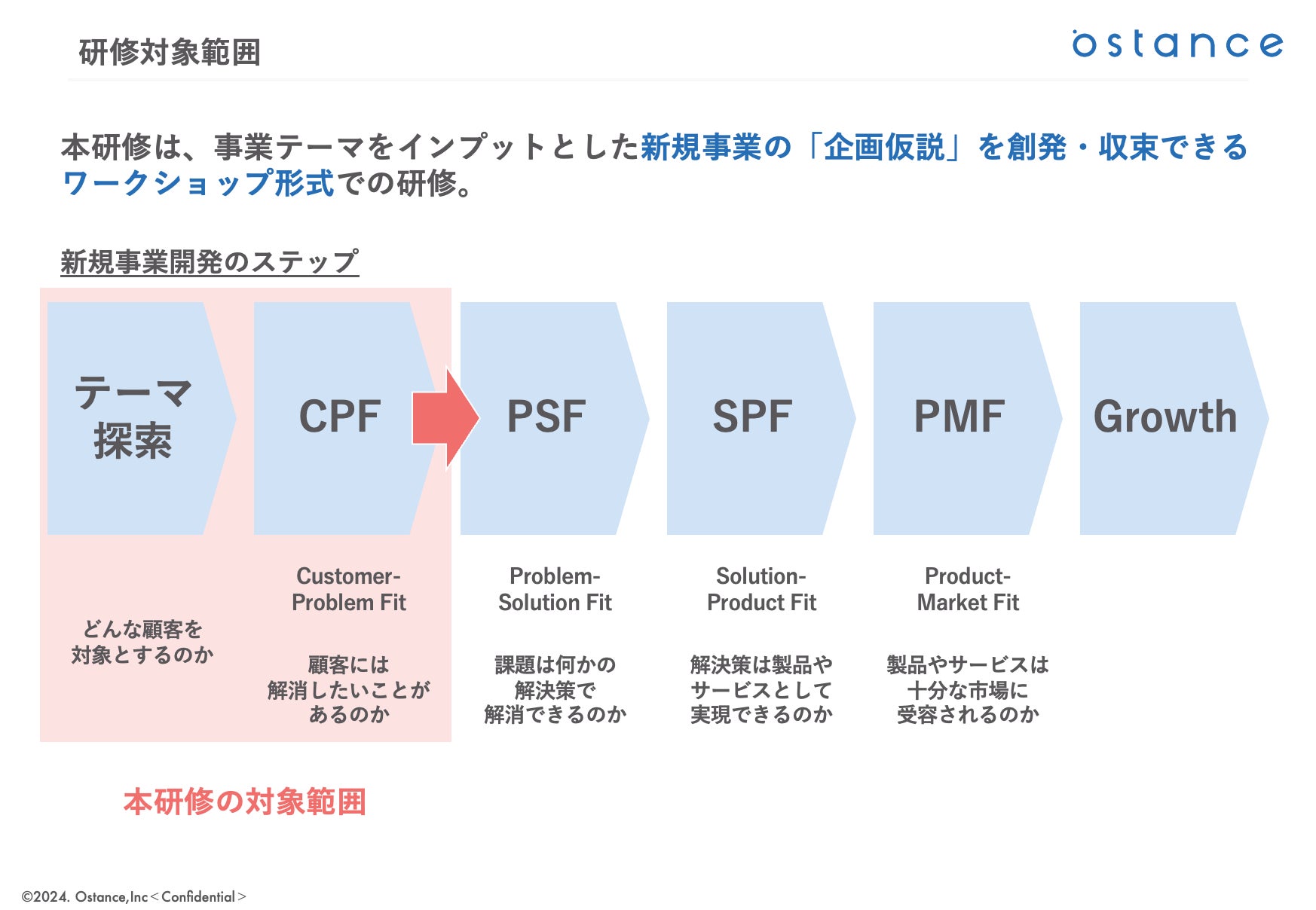 事業テーマをインプットとした新規事業の「企画仮説」を創発・収束できるワークショップ形式での研修となります。