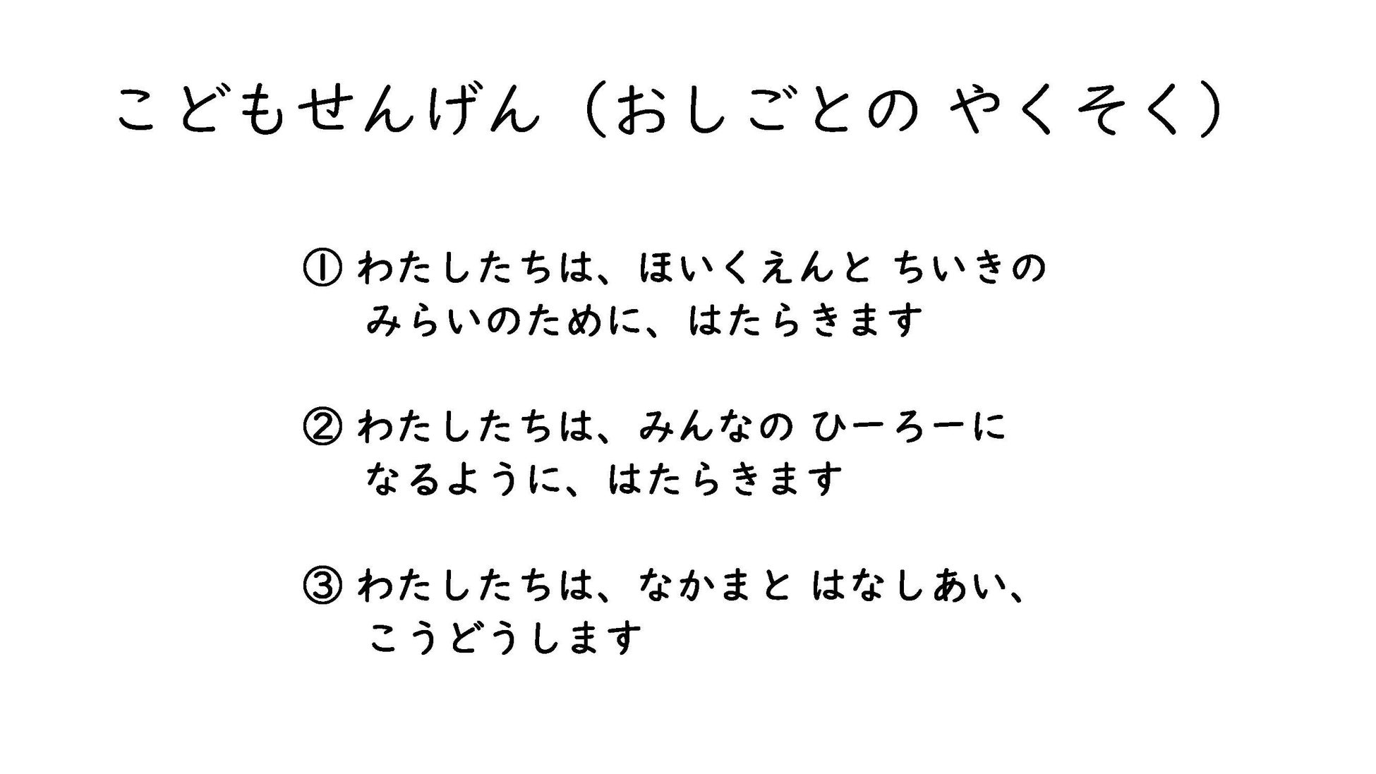 みんながにこにこ過ごせる保育園を一緒に作っていきましょう。