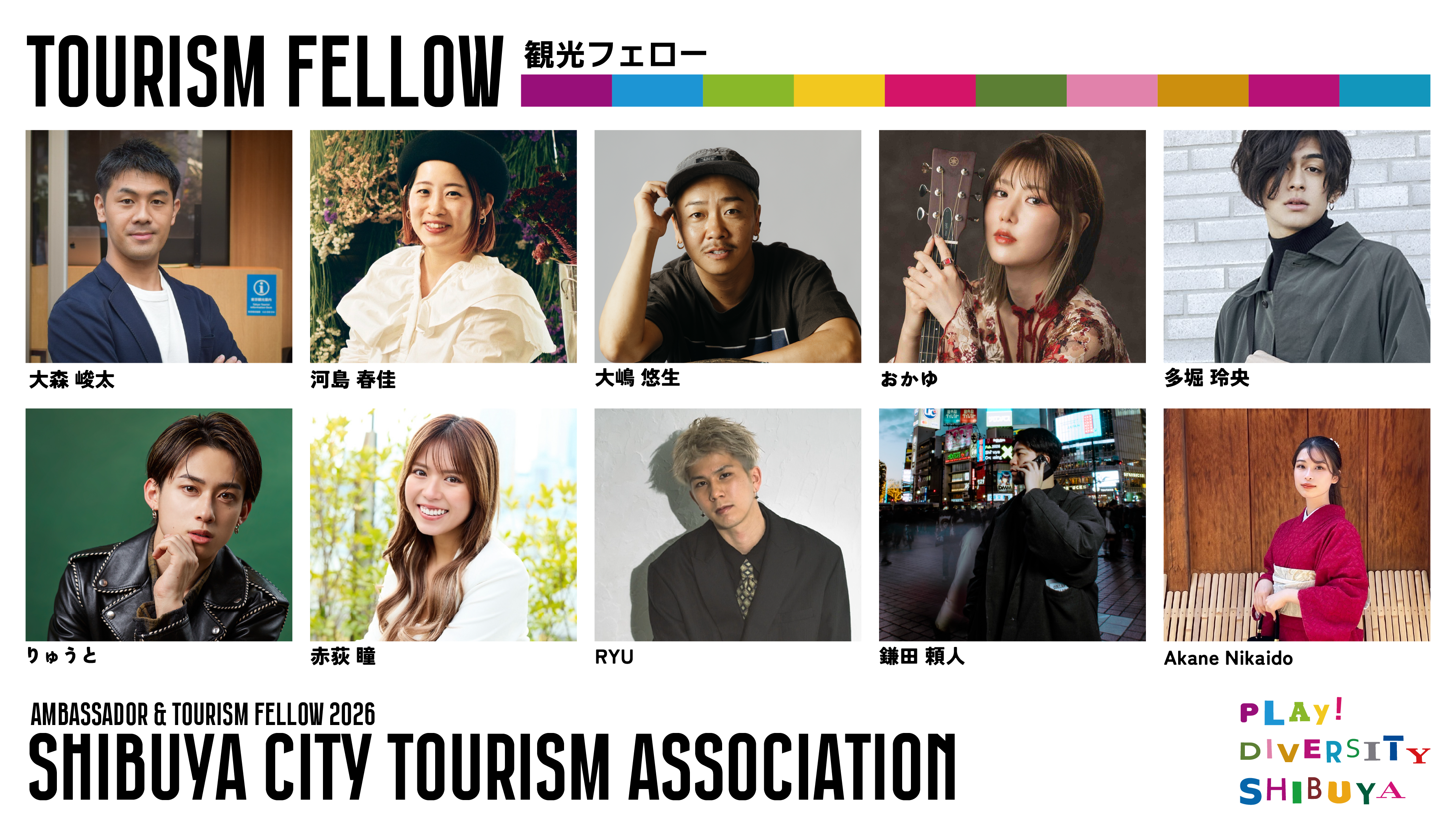 一般財団法人渋谷区観光協会(所在地:東京都渋谷区、代表理事:金山淳吾)は、2026年4月28日(火)の「シブヤの日」に合わせ、本年度の渋谷を共に盛り上げる「観光大使」および「観光フェロー」計15名を発表・紹介いたします。