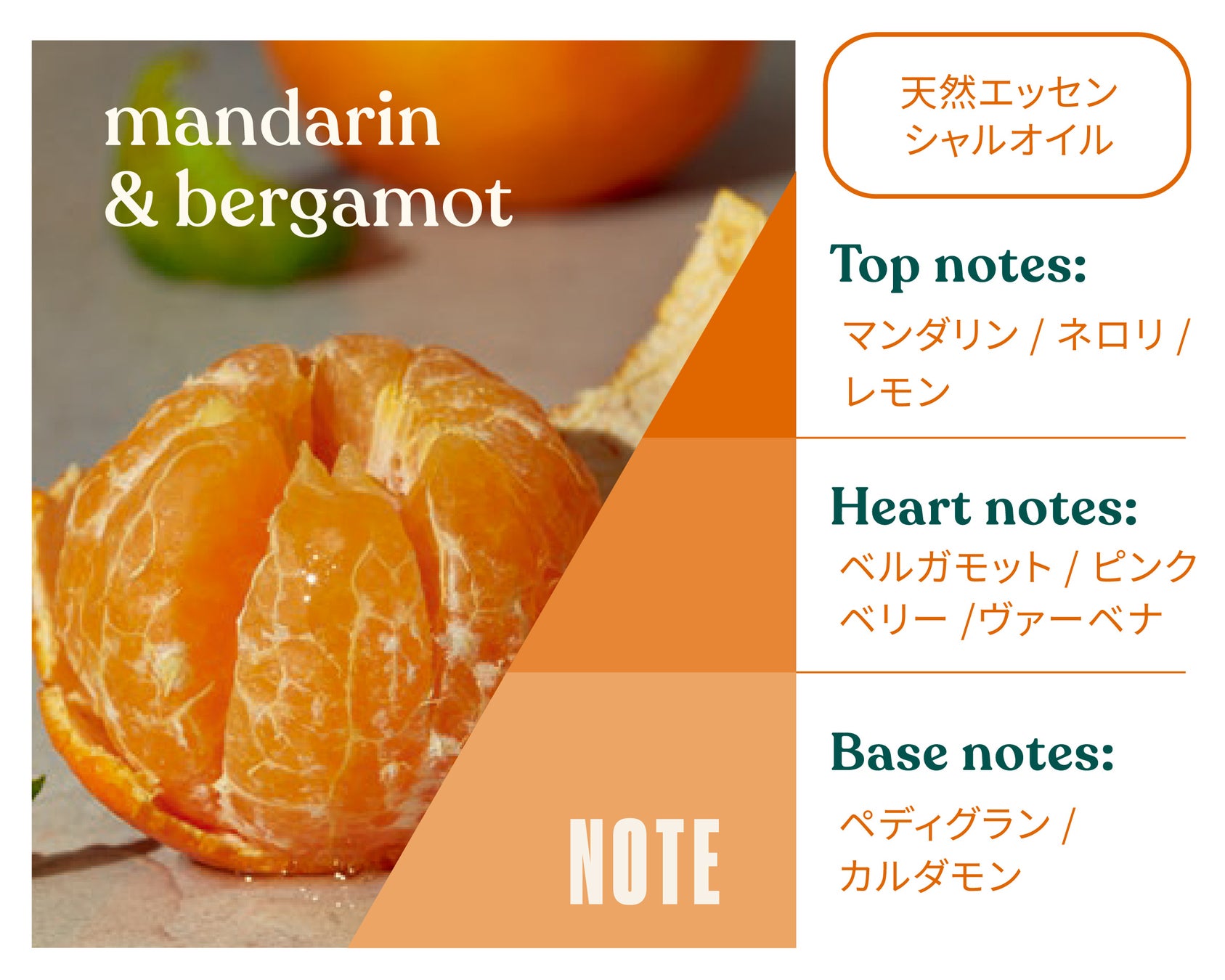 エネルギー高く、ポジティブな気持ちを保つことは、毎日ヘルシーな生活を送るためにはとても重要なこと。フードロスに取り組むイタリアの生産者が作ったマンダリンや、ベルガモットのすっきりとした鮮やかな香りは、気持ちを引き立てて、強い活力をもたらしたい時におすすめです。