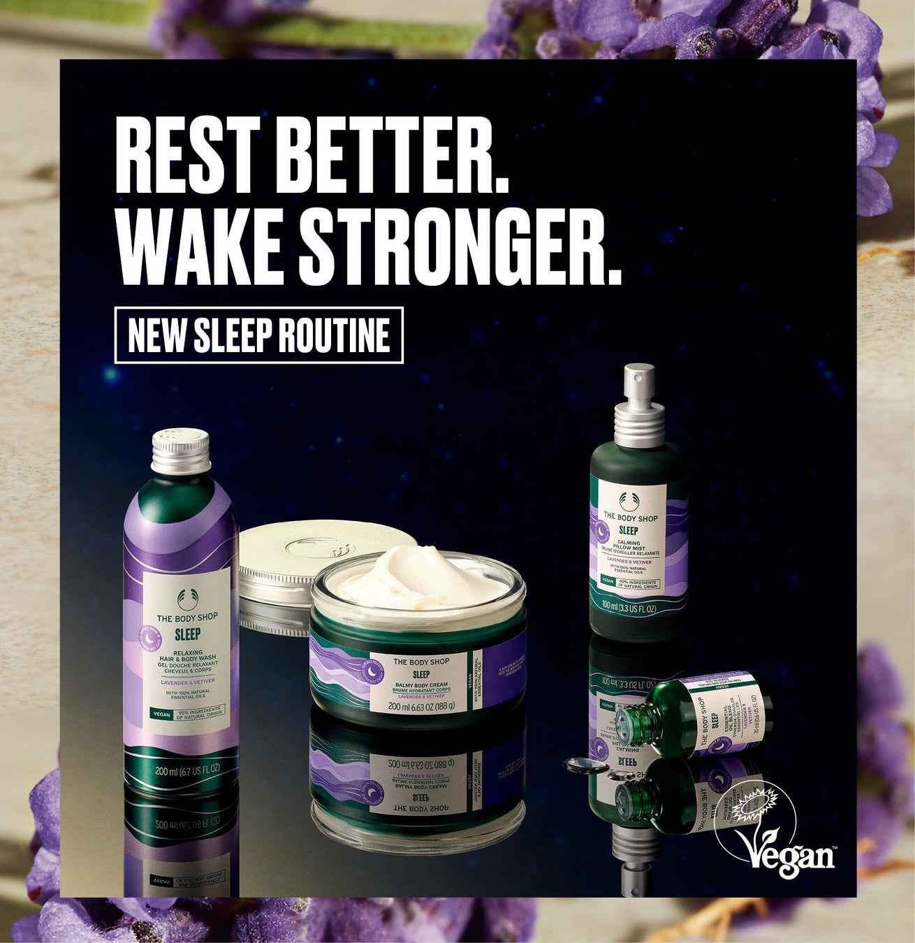 変化や混乱が続く中でウェルビーングを維持するには、意識的に心や体を緩めてリラックスすることが必要になります。ザボディショップが考える「ウェルネス」とは、自分自身が最も持続可能な状態にあることです。それは、私たちが伝えてきたセルフラブにも繋がります。そこで私たちは、健やかに充実した日々を過ごす上で重要な3つのルーティンを定義しました。それは、「休息をとること」「エネルギーを高めること」「呼吸を整えること」。「ウェルネス」の3シリーズは、このウェルネスルーティンを天然のエッセンシャルオイルの力でサポートします。