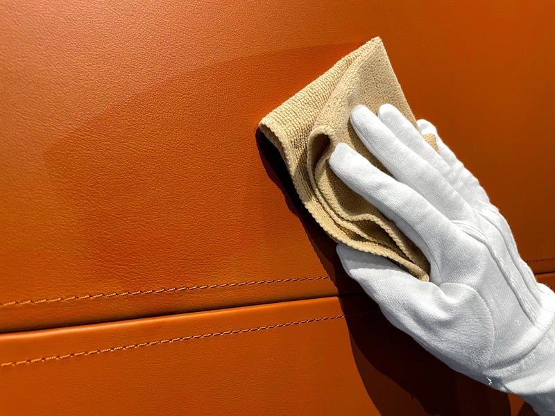 ・作業内容:クリームを塗布し、革を保護。方法のレクチャー、頻度について説明
