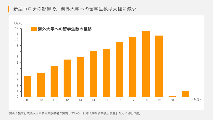 コロナ禍激減した留学者数の回復を目指し、政府は「海外留学の促進」に注力