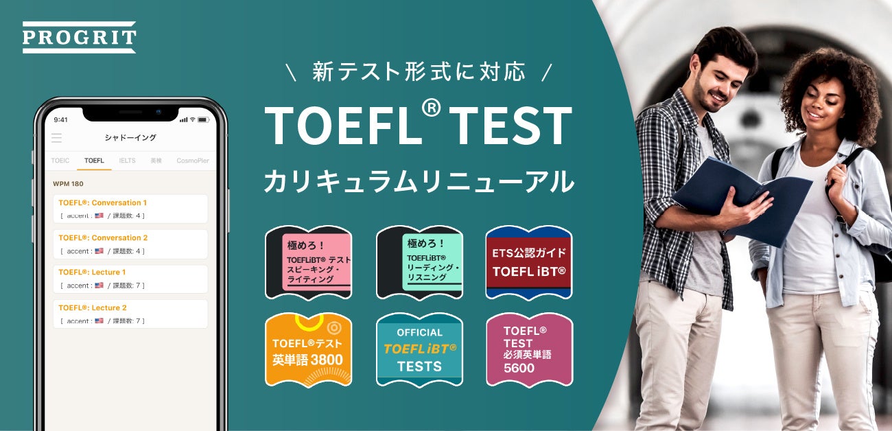 プログリットでは、今後予想される留学需要の増加、また今回の新形式への変更に対応し、TOEFL iBT®︎ TESTコースのカリキュラムを全面的にリニューアルします。今回のリニューアルに際しては、ロングセラーTOEFL® TEST教材の著者である日永田伸一郎氏にカリキュラムを監修いただいています。教材選択からトレーニング開発まで深くプロジェクトに携わっていただいたことで、より実践的かつ本質的なカリキュラムの提供が可能となりました。