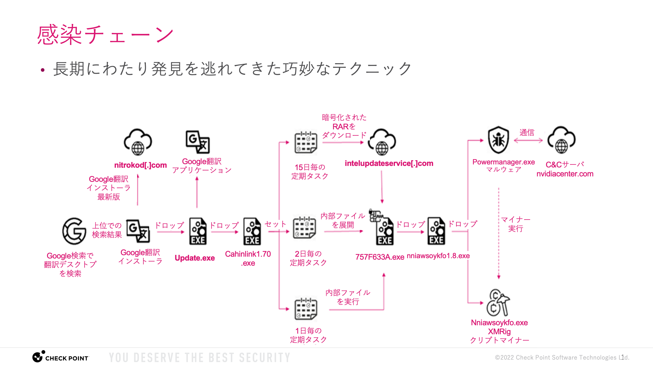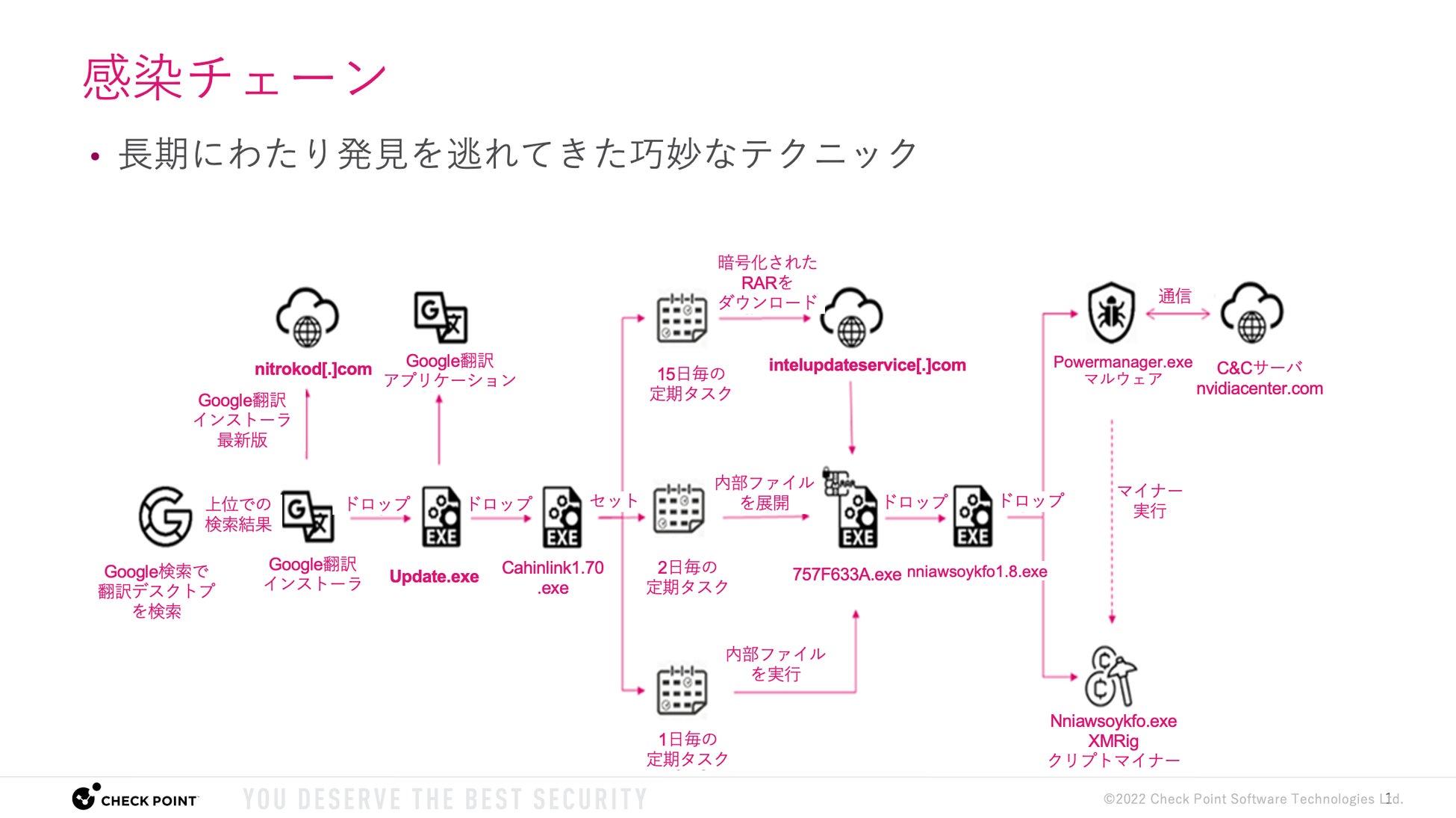本件に関する詳細は、チェック・ポイント・リサーチのブログ< https://research.checkpoint.com/2022/check-point-research-detects-crypto-miner-malware-disguised-as-google-translate-desktop-and-other-legitimate-applications/ >でご覧いただけます。