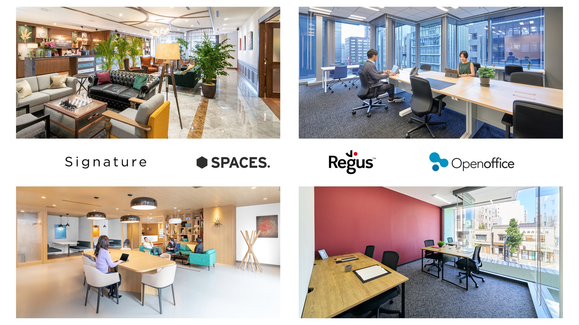 洗練された空間を提供する大人のコワーキング「Signature(シグネチャー)」、創造的なコラボレーションを実現する「SPACES(スペーシズ)」、上質なワークスペース、多彩なロケーション、柔軟なプランを提供する「Regus(リージャス)」、働くをもっとシンプルに、を目指したコンパクトで機能的な「Openoffice(オープンオフィス)」の4つのブランドを運営することで、多様なお客様のニーズにフィットするフレキシブルオフィスソリューションを提供しています。