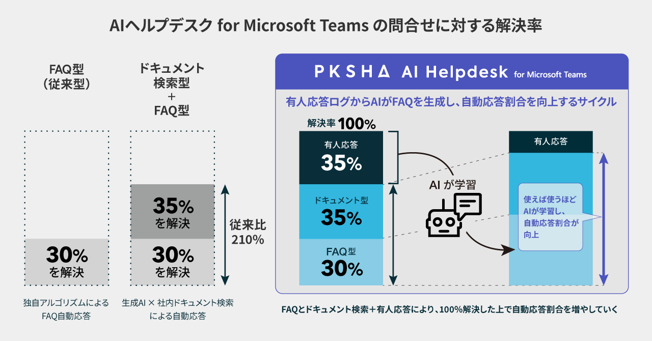 PKSHA、「AIヘルプデスク for Microsoft Teams」上にドキュメント検索機能を一般公開開始、独自AIと生成AIのハイブリッドにより従来比210%の自動対応を実証