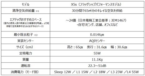 ※1 試験対象物質(タバコ煙粒子)を含まない清浄空気供給量。China GB/T18801‐2015 Air Cleaner 規格により外部機関(Vkan Certification & Testing Co.,Ltd.)で試験して得られた CADR 値に基づいた数値より算出。AHAM 規格に基づく数値ではありません。畳数は 1 畳を 1.54 ㎡(江戸間換算)、部屋の高さを 2.4m として算出。