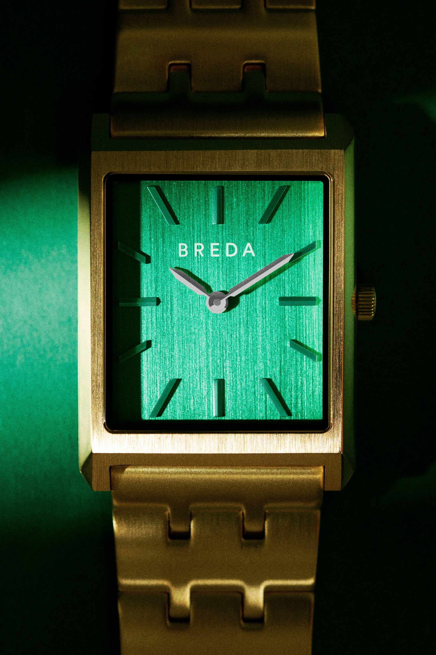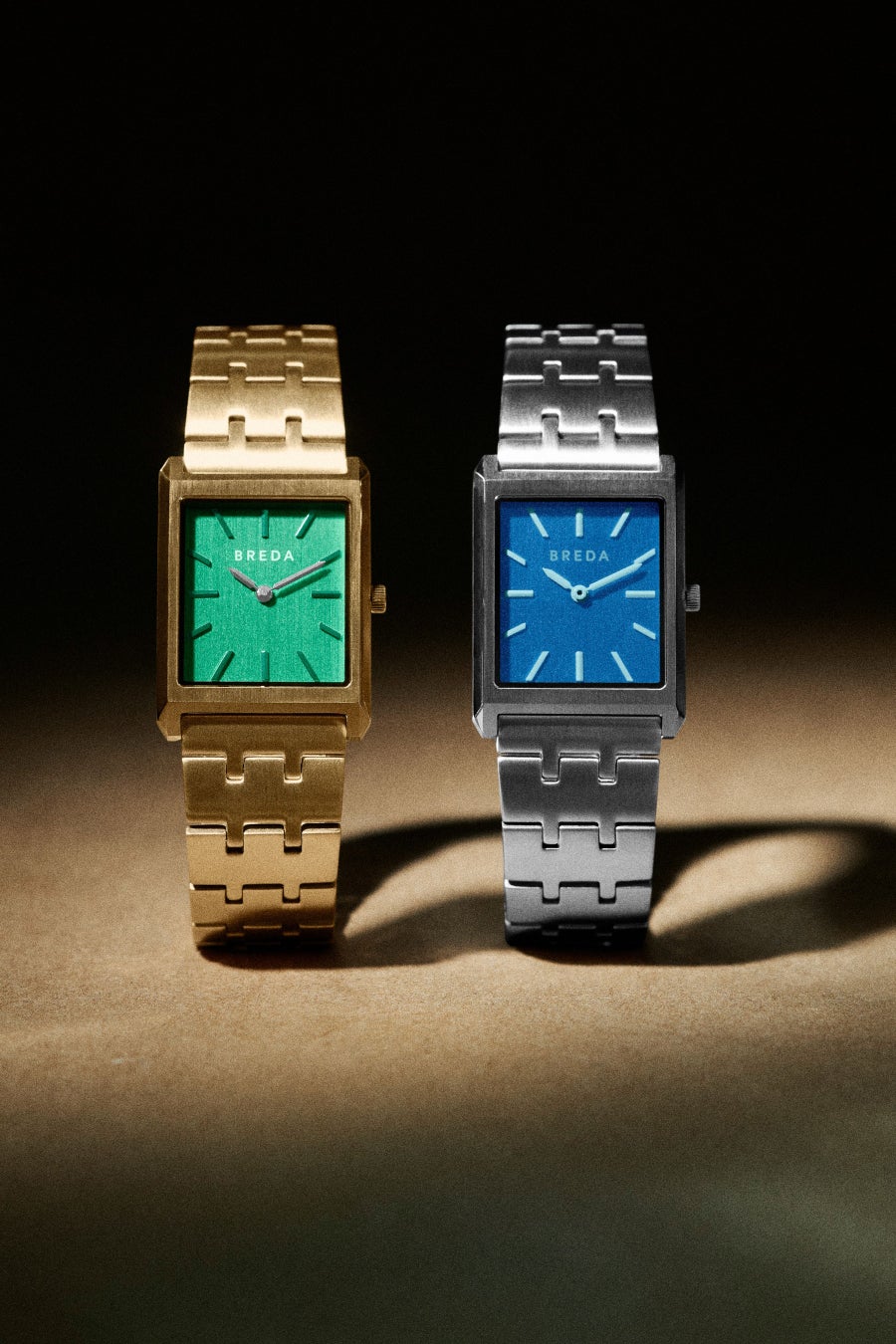 新作は、ジェードグリーンとコバルトブルーの2色。夏の気分を盛り上げるような華やかで美しいグリーンとブルーは、ヴィンテージ感漂う時計デザインにアクセントを添えています。BREDA のブランドコンセプトでもある ”Timeless self-expression." (時を超えて、自分らしく。) に寄り添い、自分らしさを表現するツールとしてのタイムピースに仕上がりました。