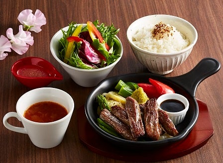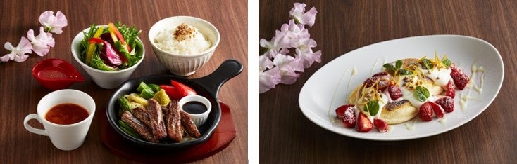 今回のフェアでは、やわらかい牛ハラミステーキに少し甘いてりやきソースと柚子胡椒をトッピングした「やわらか牛ハラミステーキ~柚子胡椒添え~」やフレッシュ苺をたっぷりトッピングした「苺のパンケーキ~練乳クリーム添え~」などをご用意しました。