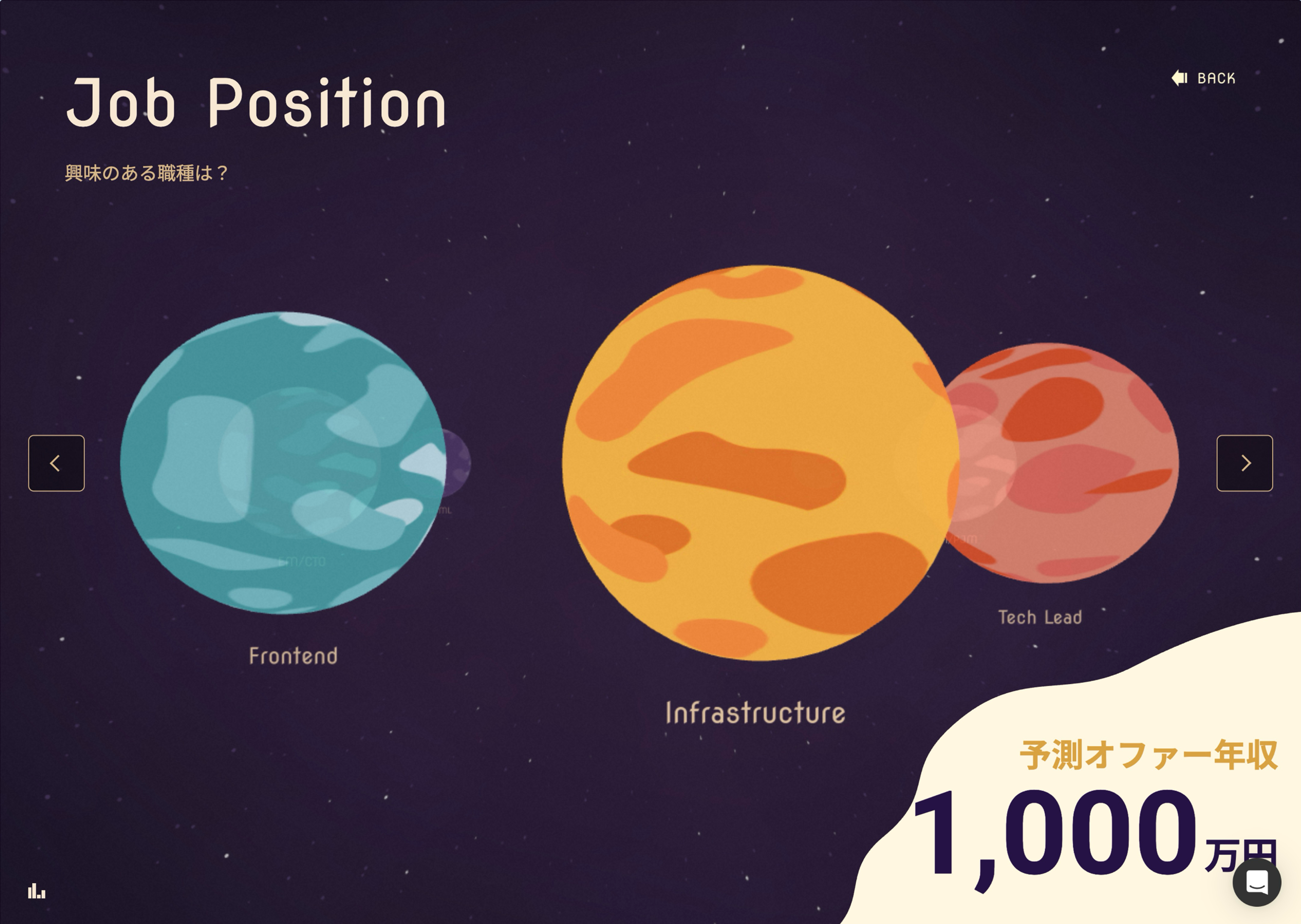 エンジニアのキャリアにおける選択肢が急速に多様化する中で、「現在の延長線上」にある未来以外を具体的に想像することは容易ではありません。 LAPRASでは、今すぐの転職を前提としない場合でも、「もし自分がメイン言語を〇〇に変えたら?」「もしスタートアップ企業へ挑戦したら?」といった、キャリアにおける「if(もしも)」の世界をもっとカジュアルに楽しんでいただきたいと考えました。 本コンテンツを通じて、ユーザーが自身の秘められた可能性に気づき、これからのキャリア形成をよりポジティブな「いい未来」として捉えるきっかけを提供するために開発されました。