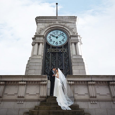 ・対象商品を税込15万円以上お買い上げのお客様への特典として、セイコースカイガーデン 時計塔前で記念撮影をしていただけます。