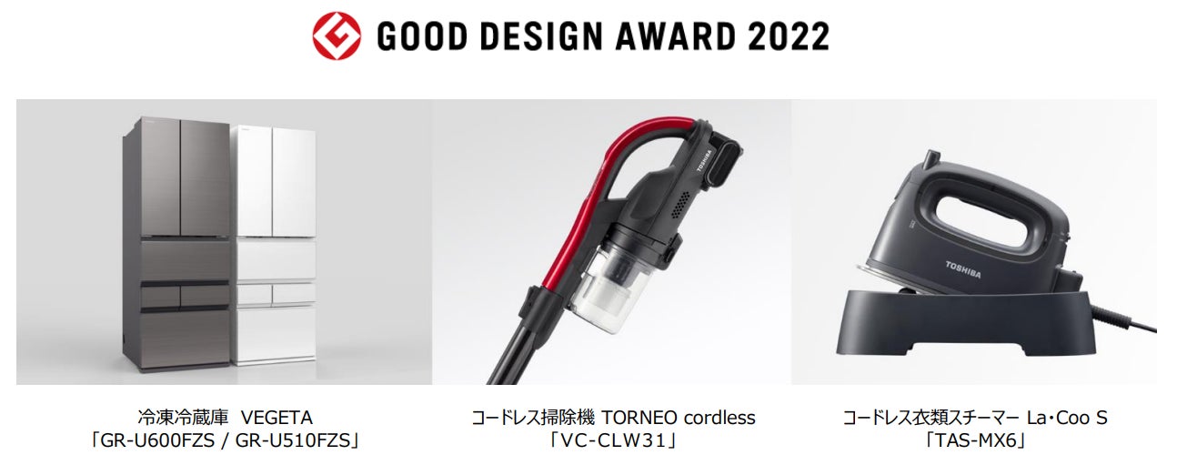 冷凍冷蔵庫・コードレス掃除機・コードレス衣類スチーマーの3製品が「2022年度グッドデザイン賞」を受賞