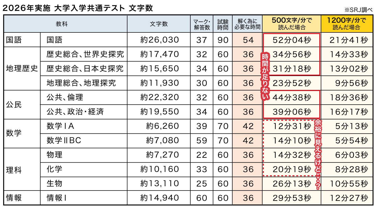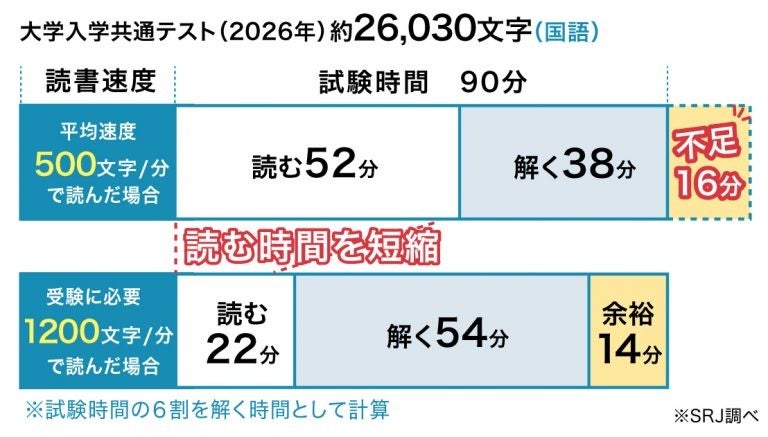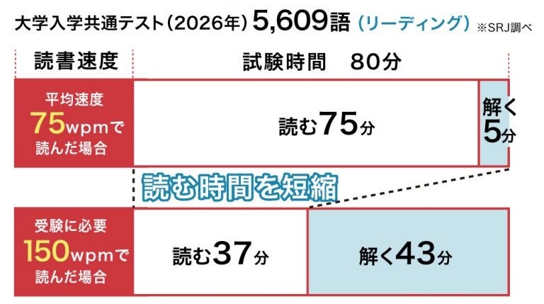 株式会社ウィザス(本社:大阪府大阪市、代表取締役社長:生駒 富男)のグループ会社である株式会社SRJ(本社:東京都中央区、代表取締役:松浦 淳志)が運営する一般社団法人日本速読解力協会(本部:東京都中央区)は、2026年1月に実施された「大学入学共通テスト」の文字数・語数分析結果を公開いたしました。