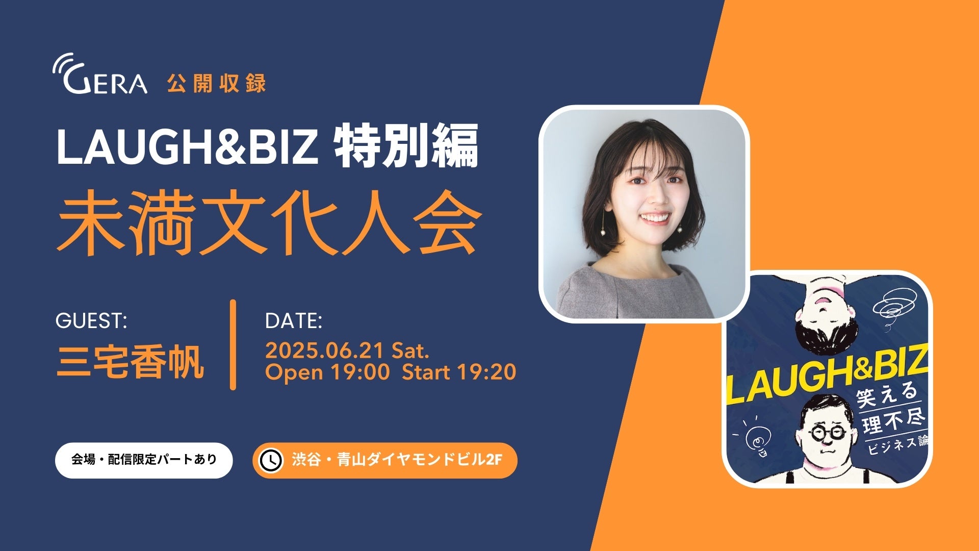 【お笑いラジオアプリGERA】LAUGH & BIZ -笑える理不尽ビジネス論-好評につき特別編の公開収録 開催決定!ゲストは文芸評論家の三宅香帆さん