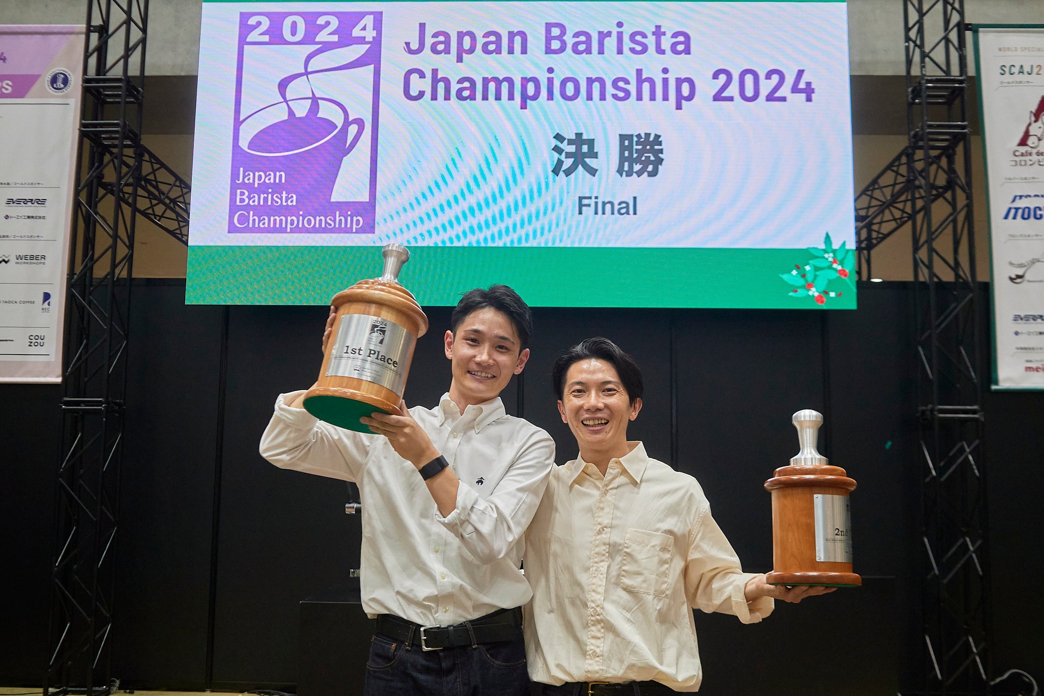 猿田彦珈琲株式会社(本社:渋谷区/代表取締役:大塚朝之)は、2024年10月10日(木)東京ビッグサイトにて行われた「ジャパン バリスタ チャンピオンシップ 2024(以下JBC2024)」にて伊藤大貴バリスタが優勝、安部潤バリスタが準優勝を獲得しました。