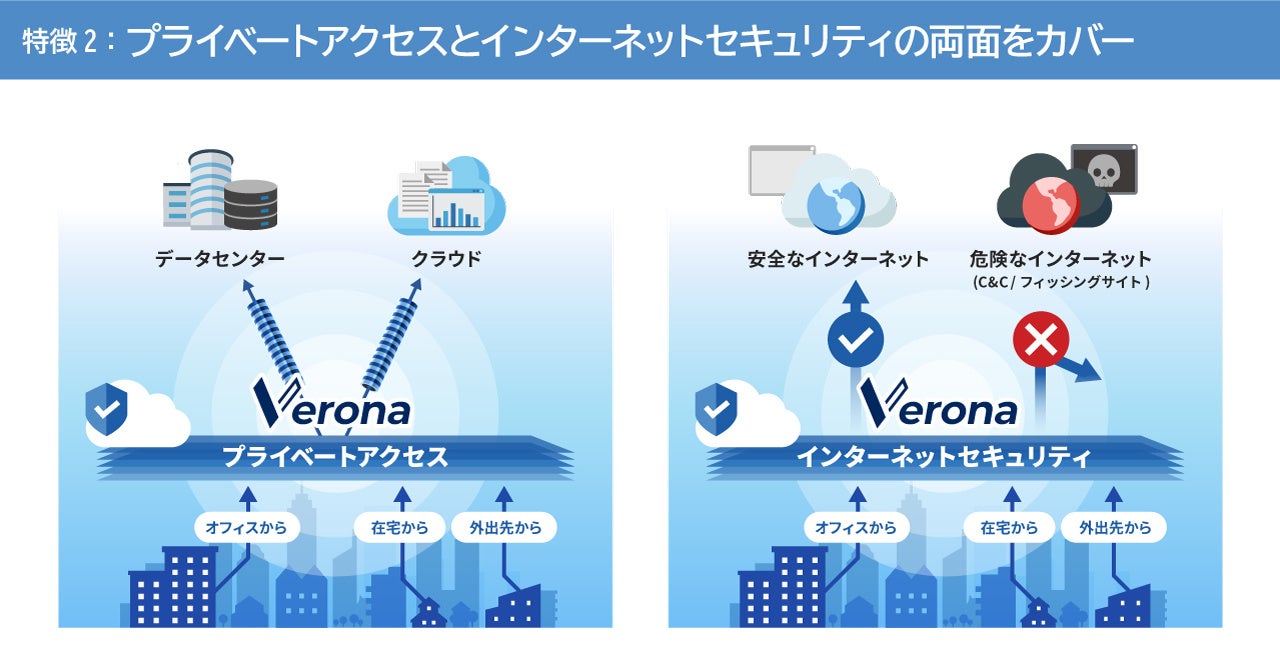 - テレワーク時のインターネットアクセスの快適性とセキュリティ強化を両立する「Verona」