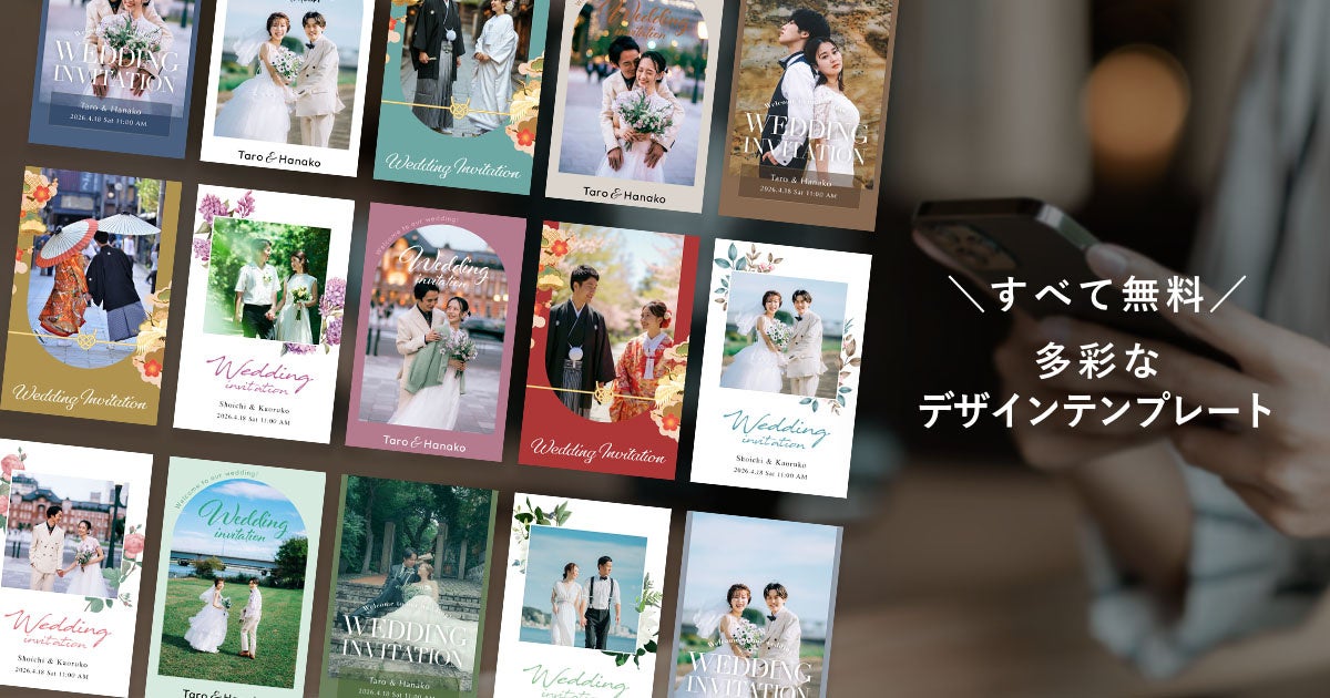 16種類のデザインテンプレートはすべて無料で使用可能で、式の雰囲気やふたりの好みに合わせて自由に選べます。