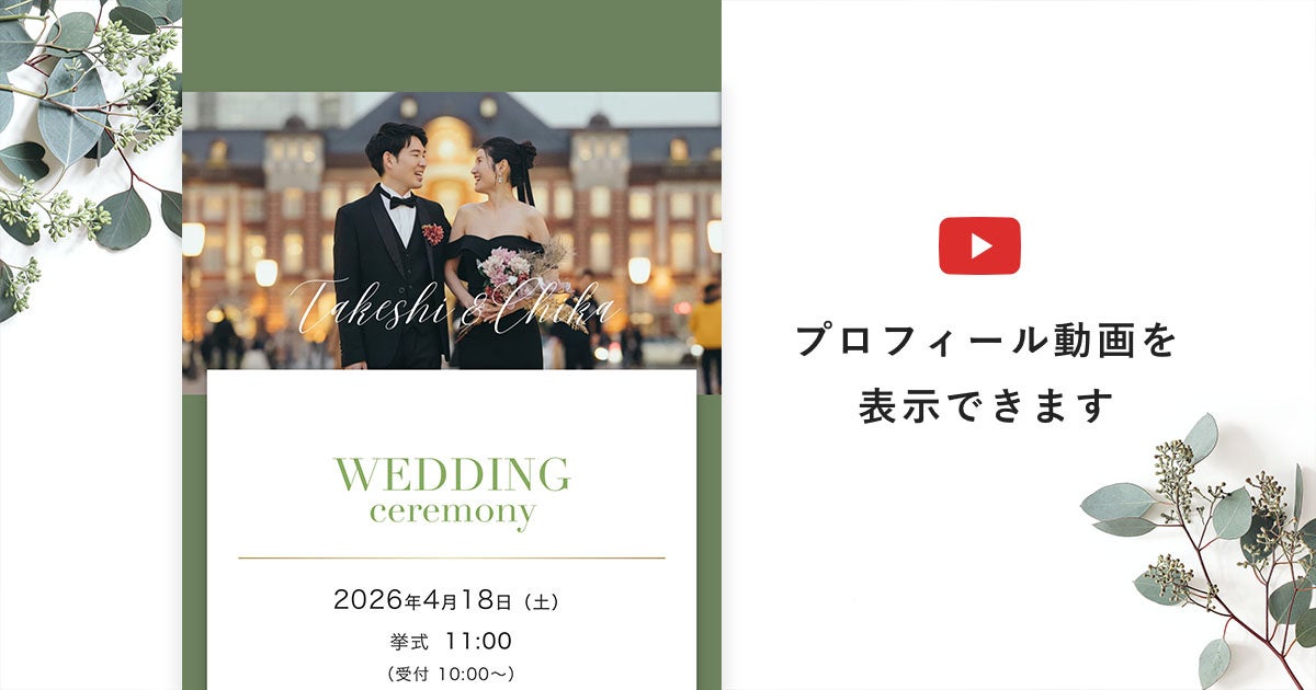 このムービーをはじめ、プロフィール動画などを掲載できる機能を備えており、当日の演出に代わるかたちで、準備段階から自然に“ふたりらしさ”を届けることができます。