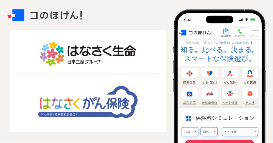 「コのほけん!」は、保険選びをオンラインで完結できるデジタル保険代理店です。 保険の見積り・比較・検討・申込まですべてをデジタル化し「自分に合った保険を、自分で選べる世界」を実現します。コのほけん!は直感的に操作しやすく、イラストやインフォグラフィックスを取り入れることで、複雑で分かりづらいと思われがちな保険商品を見やすく、分かりやすく掲載しています。また、口コミや専門家のコメントが充実しておりインターネットがあれば時と場所を選ばず、保険を検討することができます。