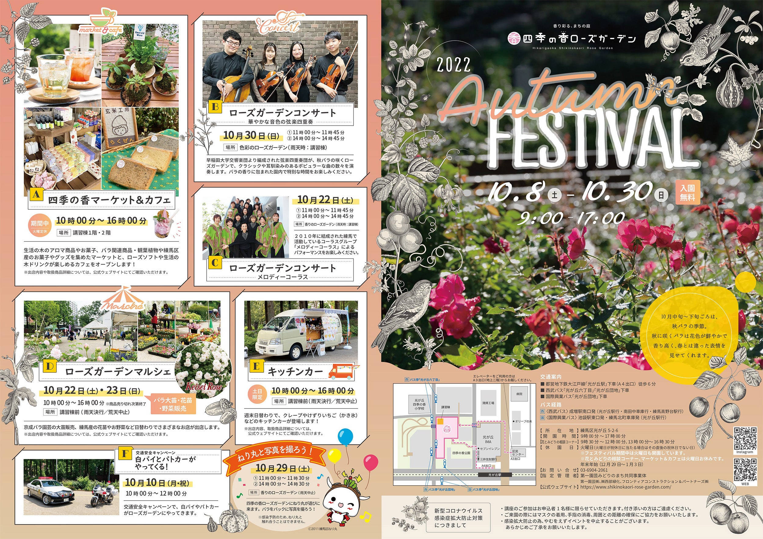 花と緑に関する事業を展開する第一園芸株式会社(本社:東京都品川区、代表取締役社長:伊藤昇、三井不動産グループ)と株式会社西部緑化・フロンティアコンストラクション&パートナーズ株式会社による「第一園芸みどりのまち共同事業体」が指定管理者として参画する『練馬区立 四季の香(かおり)ローズガーデン』では、10月8日(土)から10月30日(日)までオータムフェスティバルを開催します。