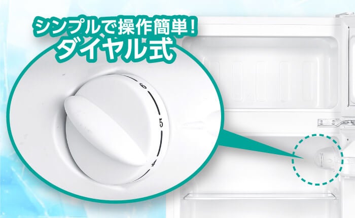 庫内に入れる食品の量や周辺環境に合わせて自由に温度調節ができます。週末の買い出しで比較的保存量が多い時もあれば、飲み物しか入っていない時など、その時々によって内容量の差が激しい一人暮らしの方に便利な機能です。また、どなたでも簡単に調節できるダイヤル式を採用し、操作性の良さも重視しました。