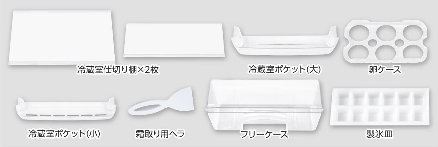 最高水準の冷凍性能「フォースター」を搭載しました。「フォースター」とはJIS規格(日本工業規格)で定められた冷凍室の冷却性能のことで、中でも最も優れた性能を表します。一人暮らしの味方である冷凍食品をしっかりと冷凍保存します。また、あると便利な製氷皿を付属しており、一度に12個の氷を作ることができます。