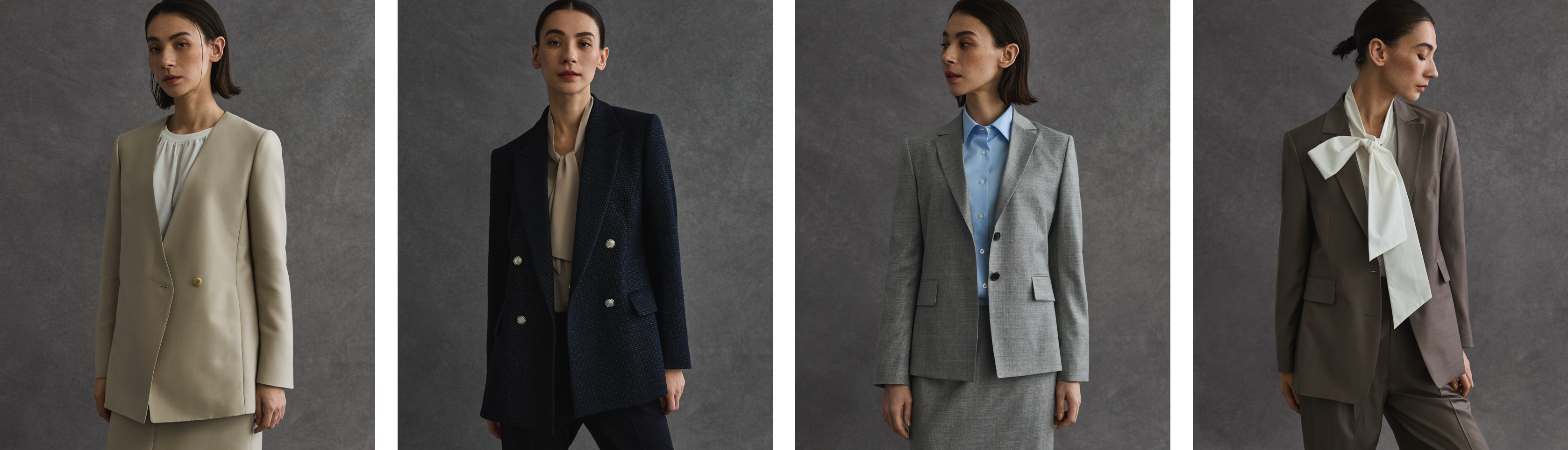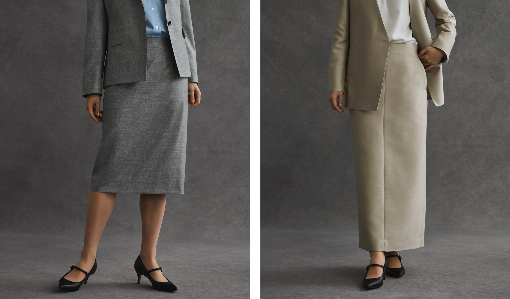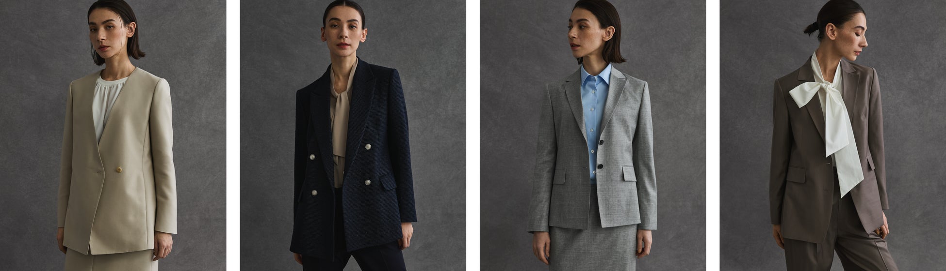 ジャケットは4モデル、パンツとスカートはそれぞれ2モデルからお選びいただけます。