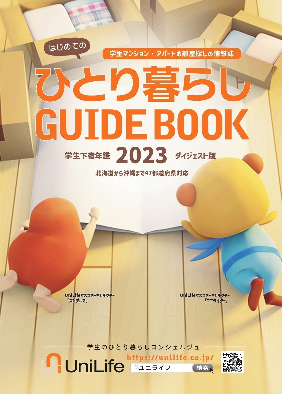 本誌のほか、エリア毎のマンション情報に特化した「学生下宿年鑑2023ユニライフ学生マンションBOOK」が今秋発行されました。