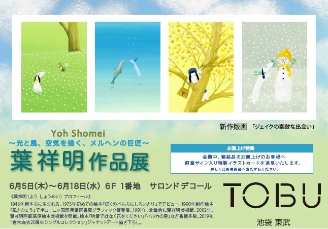 【池袋東武 6F 1番地 サロンドデコール】メルヘンの巨匠【葉祥明 作品展】6/5(木)~6/18日(水)まで開催中。25年に発表した新作版画3点は必見。葉祥明の爽やかな癒しの世界にようこそ。