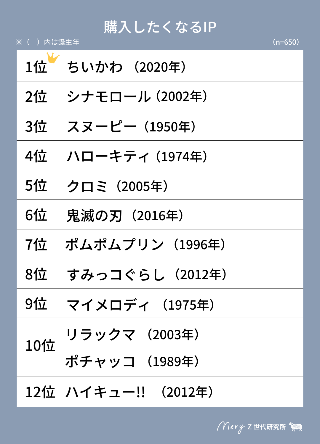 【MERY Z世代研究所 IP調査】Z世代女性に人気のIPは、「ちいかわ」と「シナモロール」が2大巨頭。
