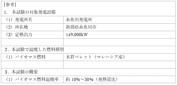 - 糸魚川発電所、木質バイオマス燃料10%-30%混焼試験完了 -