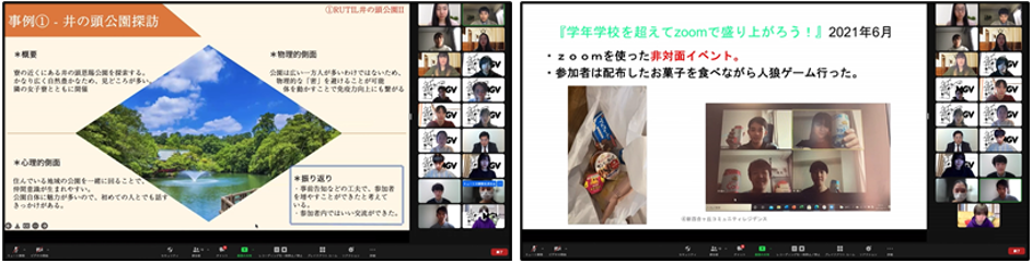 さらに議題ごとにグループを分けて6~8つの寮がプレゼンする「テーマ別ショートセッション」では「外部とのつながり(SDGs・国際交流・フリーテーマ)」「発信の工夫~SNS活用など~」「コロナ対策1」「コロナ対策2」の4つのテーマで展開。コロナ禍における新入寮生受け入れ、寮内交流のための季節ごとのイベント開催など、寮だからこそできる取り組みを発表しました。また、寮内外への情報発信においてはライングループや公式インスタグラムを活用。寮の魅力を広く伝えるための取り組みをプレゼンしました。