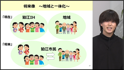 コロナ禍において、地域との関わりが希薄であること、寮内の活気がないことに気づく。地域の紹介ブックの作成や交流イベントを企画。「コロナ禍でも生き生きした寮」をテーマに周辺地域を巻き込み、寮内・地域の活性化を目指すと発表しました。