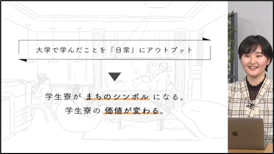新入生のサポート、学生間のコミュニケーションなど、今後「コロナ禍における学生寮の価値」はさらに増していくと考えており、寮生の後輩に向けて「トライ&エラーを繰り返し、寮生がみんなRAのような意識を持つことで、より充実した学生生活、寮生活に繋げて欲しい」とメッセージを贈りました。