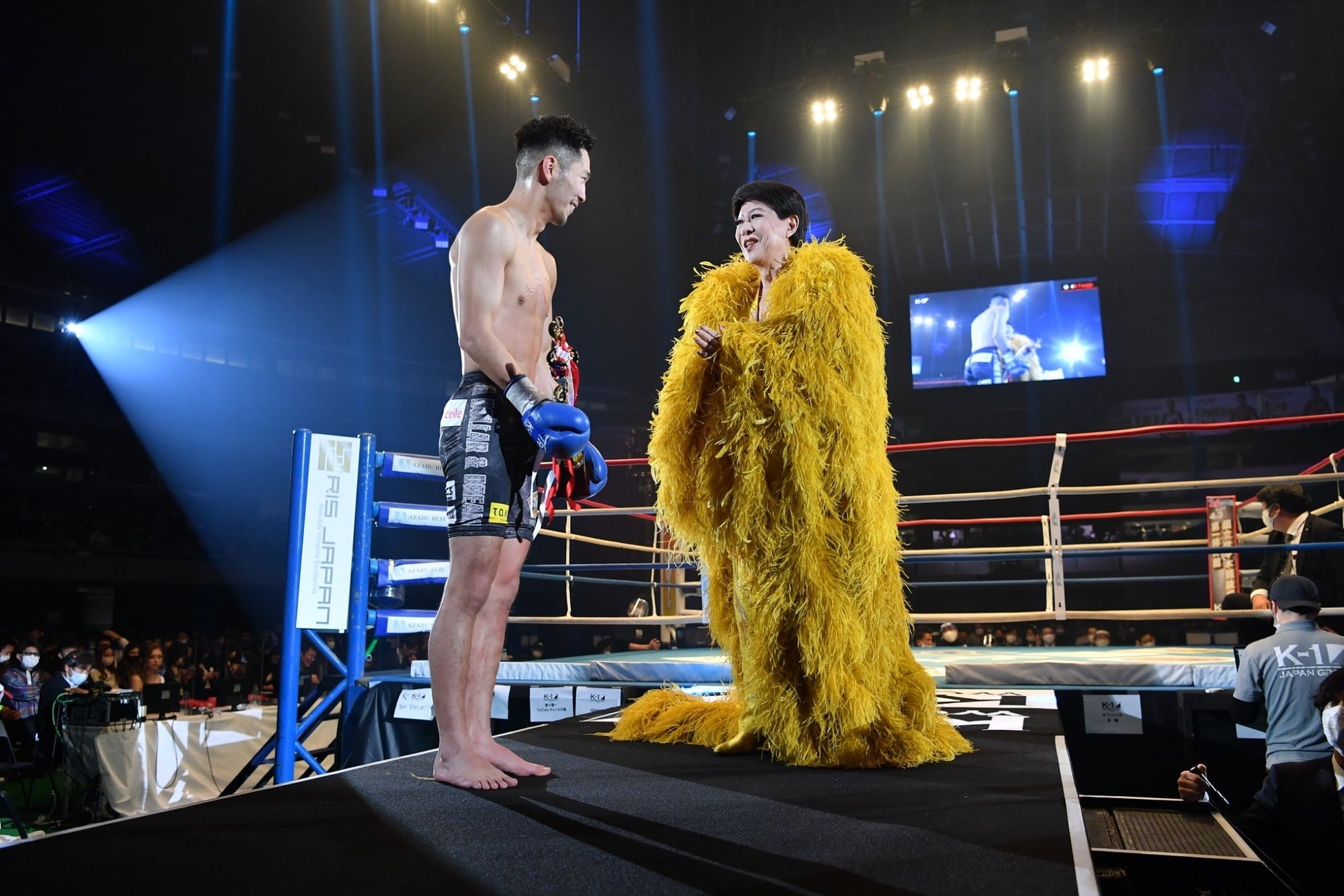 K-1/Krushの運営及びジム運営するK-1実行委員会(東京都渋谷区、 プロデューサー:中村拓己)は、2022年2月27日東京体育館で、「K-1 WORLD GP 2022 JAPAN~第3代スーパー・バンタム級王座決定トーナメント~」大会を行いました。今回特別に美川憲一さんにご登場いただき、スペシャルラウンドガールならぬ、スペシャルラウンド“スター”に初挑戦していただきました。更にゆうちゃみさんが初解説を行いました。