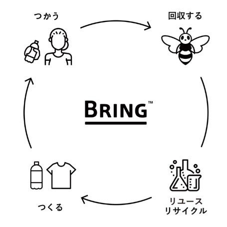 BRINGは “あらゆるものを循環させる”サーキュラーエコノミーを社会に実装しています。消費者や企業、自治体と協力し、不要になった服やペットボトル等の回収を行い、リユースや多様なリサイクル技術で原料や新しい製品等の形で市場や消費者にまで再生・循環させ、その循環を軸としたあらゆるビジネスを行っています。独自の技術で不要となった服のポリエステルやペットボトルを原料に、何度も循環する再生原料を作ることが可能です。
