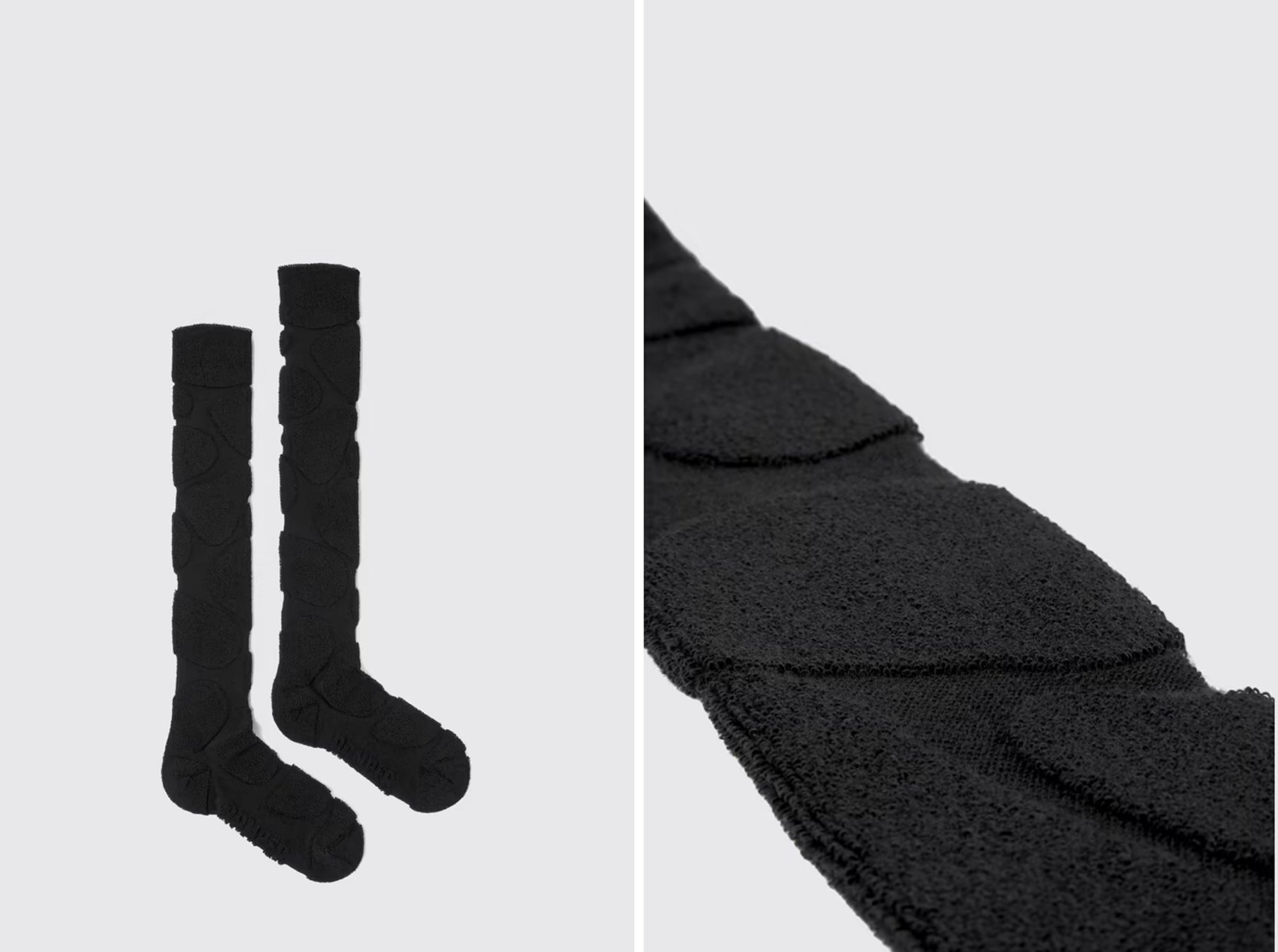 コラボレーションでは、デイリー使いにぴったりなブラックと大胆なオレンジの2つのカラーのクロッグと、オーバーニーソックスを展開します。