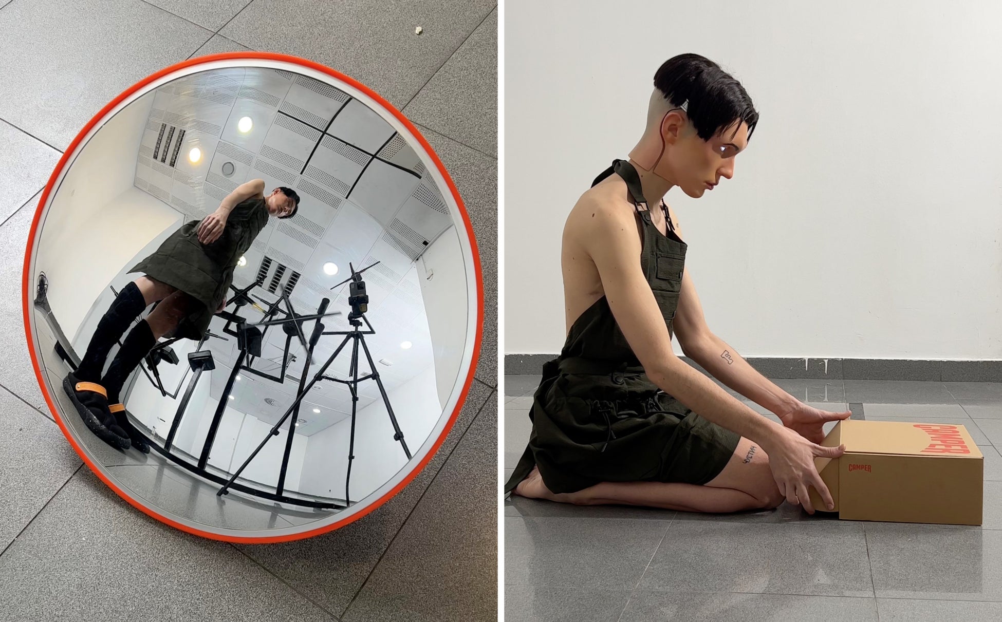 コラボレーション発売記念に、クロアチア出身でマドリードを拠点に活動するアーティストFilip Custic(フィリップ・クスティック)によるアートプロジェクトを展開。Filip Custicの作品には、CAMPERとFISKARSに共通するクリエイティブなムードが体現されています。7つのホログラフィックファンが備わったトーテム状のインスタレーションに人体を固定し、ファンを作動させると、音とともに体の周りにホログラムが浮かび上がります。(4月18日にミラノで開催された発売記念イベントにインスタレーションを展示)